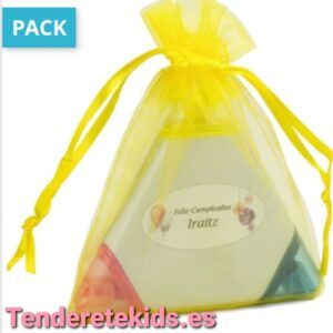 Marcador tricolor personalizado con adhesivo en bolsa de organza