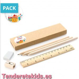 Estuche con lápices goma de borrar regla y sacapuntas con adhesivo personalizable para detalles
