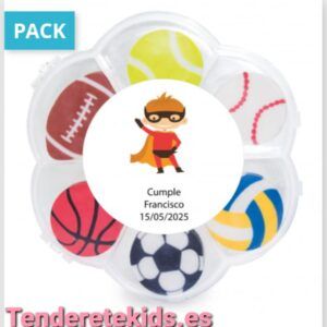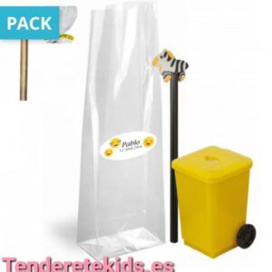 Juego de habilidad infantil con bolsa verde y adhesivo personalizado