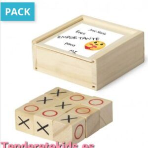 Juego tres en raya en caja de madera personaliza con nombre en adhesivo te lo mereces