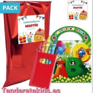 Detalles Cumpleaños para Niños Libro para Colorear con Estuche de Ceras en Bolsa Personalizada