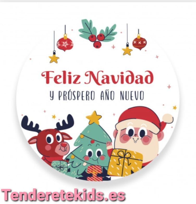 Adhesivo de Navidad personalizable con diseño de Papá Noel y amigos redondo 5cm
