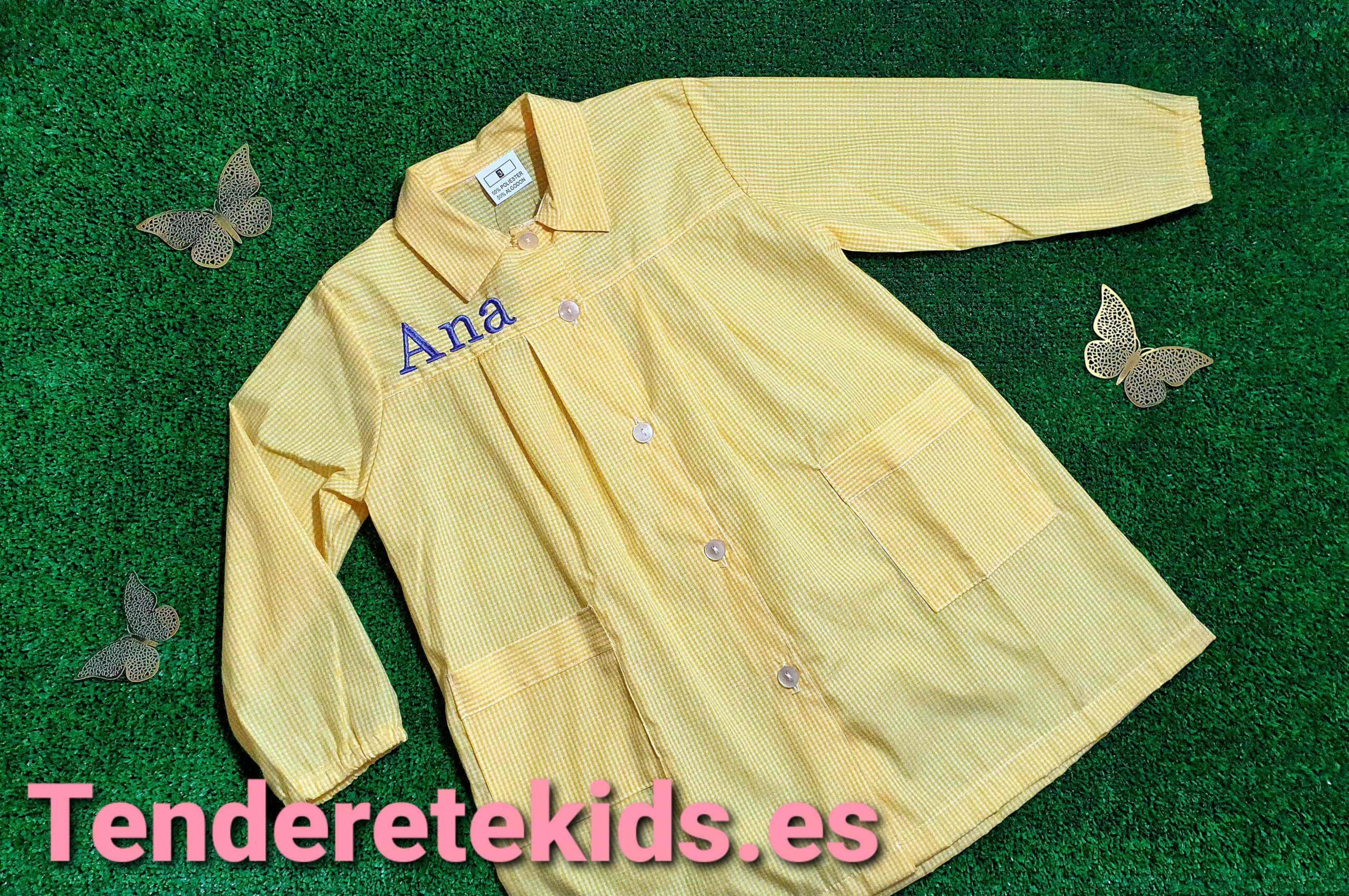 Baby vichy amarillo básico con bolsillos personalizable con nombre