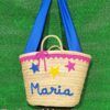 Cesta mediana modelo azul claro de cordoncillo con estrellas personalizada con nombre