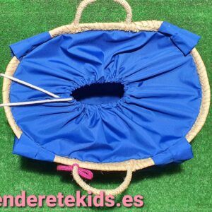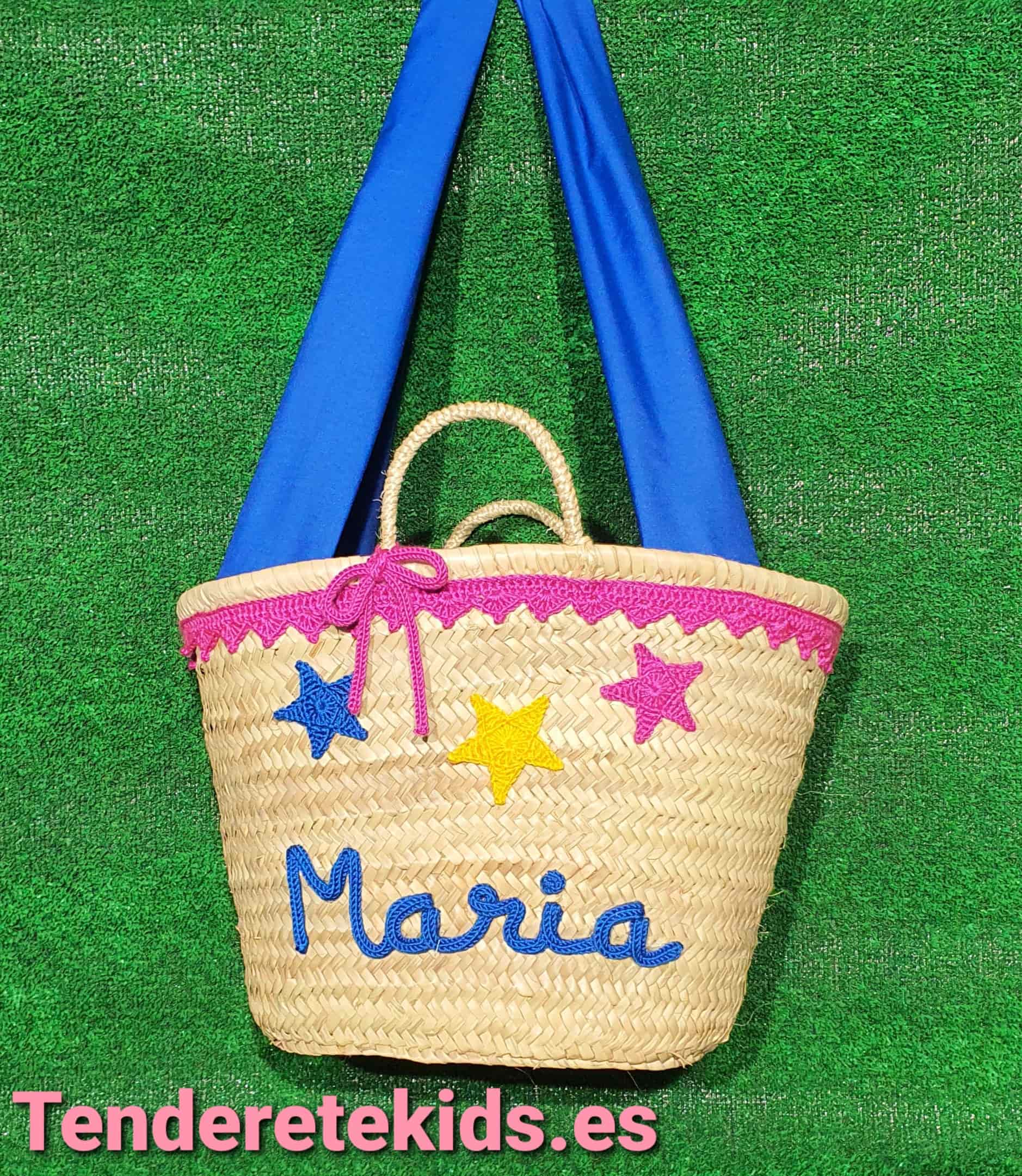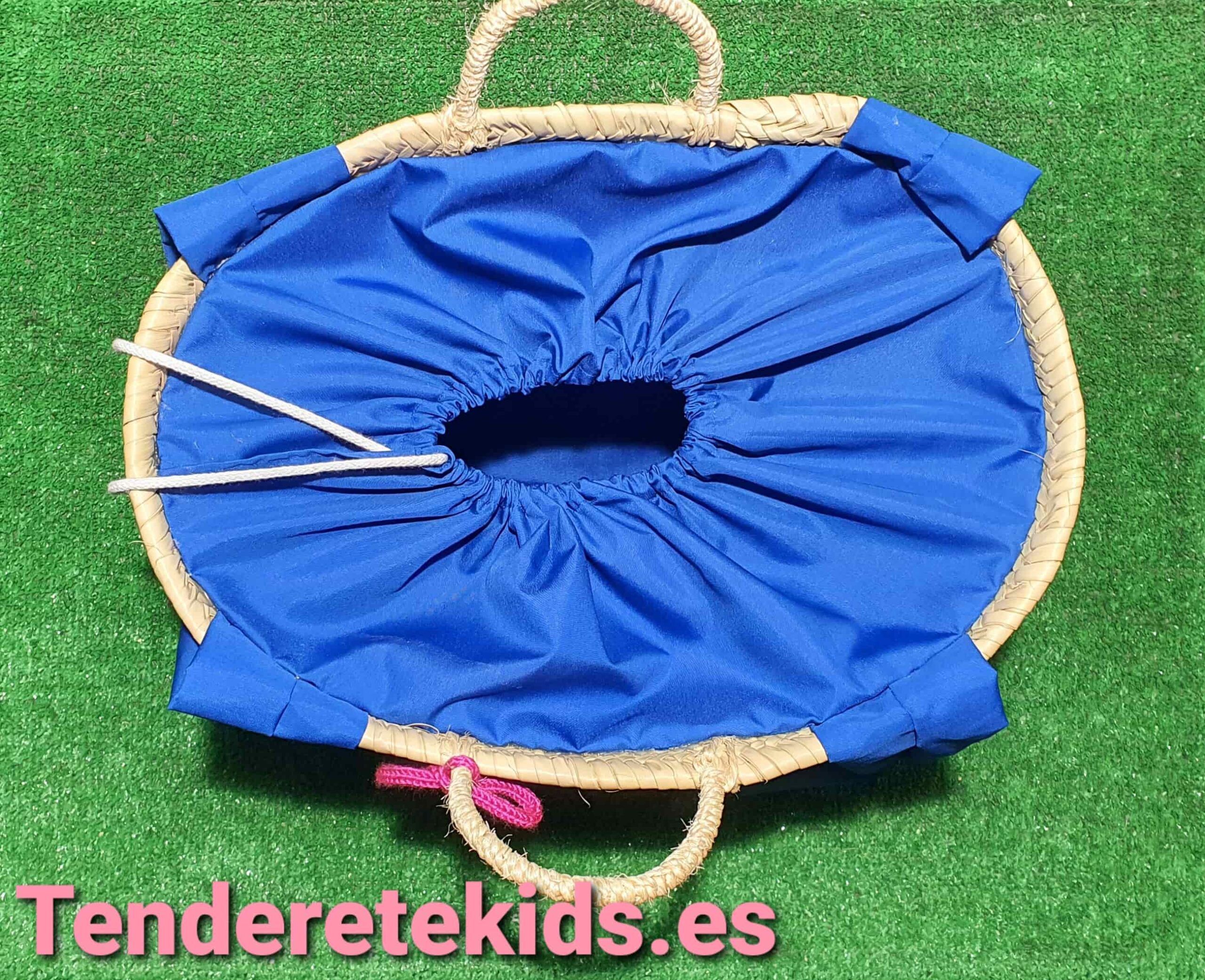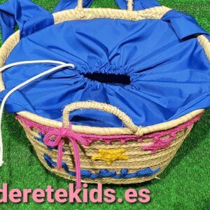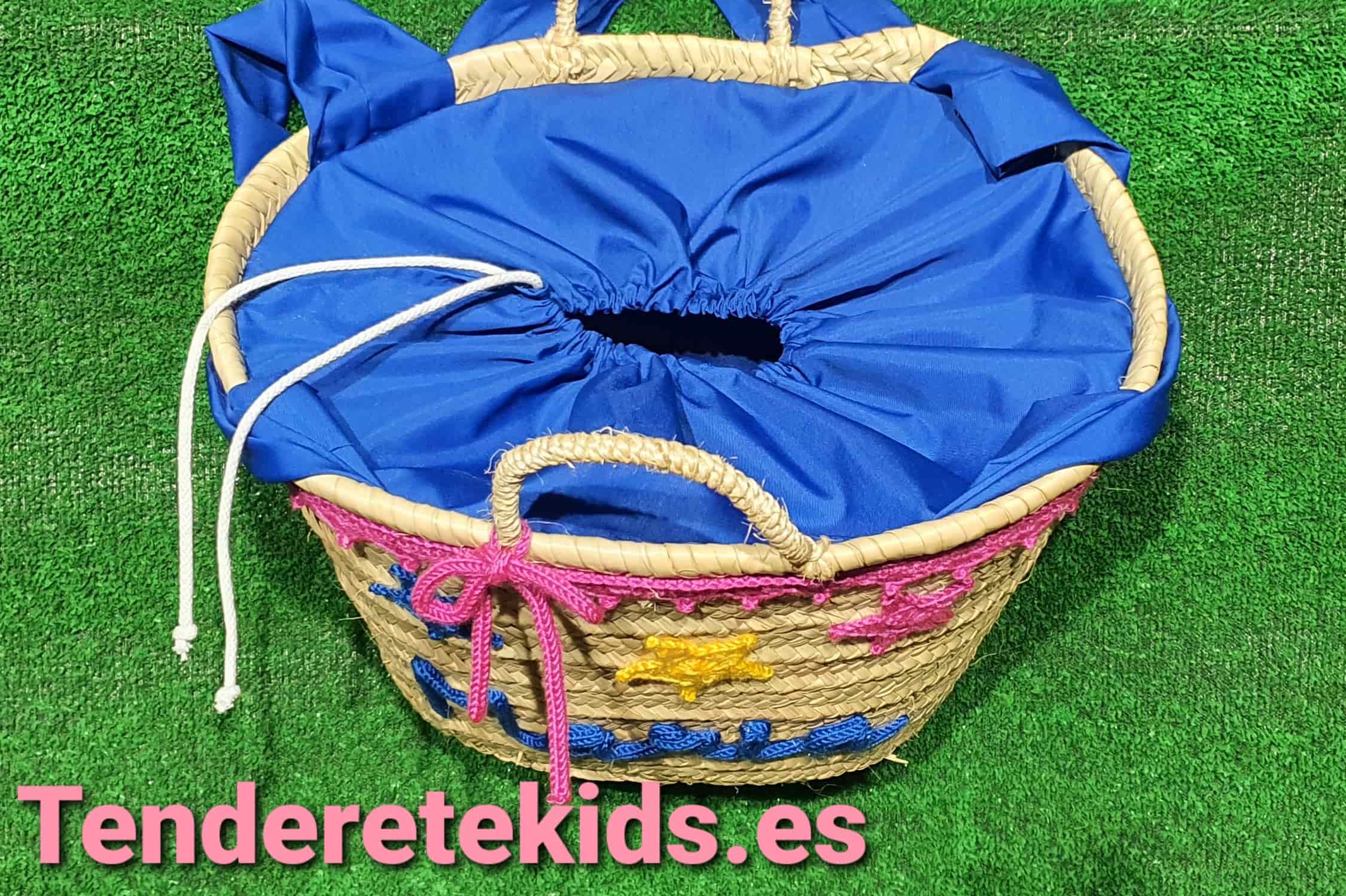 Capazo mediano personalizado interior forrado con cierre y asas de tela azul con cordoncillo y estrellas con nombre