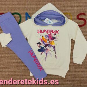 Conjunto Huntrix leggins lila letras fuscia