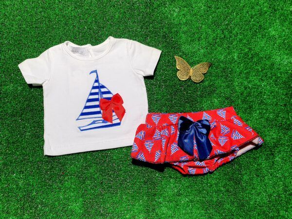 Conjunto velero rayado azul lazo