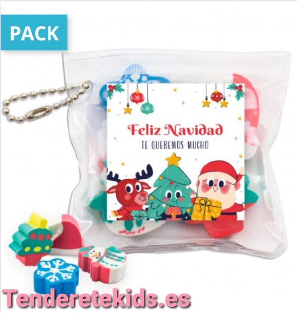 Gomas de borrar navideñas en estuche personalizado para detalles