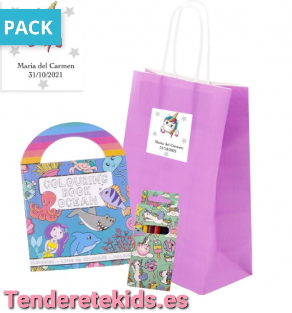 Libro para colorear con pegatinas y lápices de colores en bolsa personalizada para niñas y niños