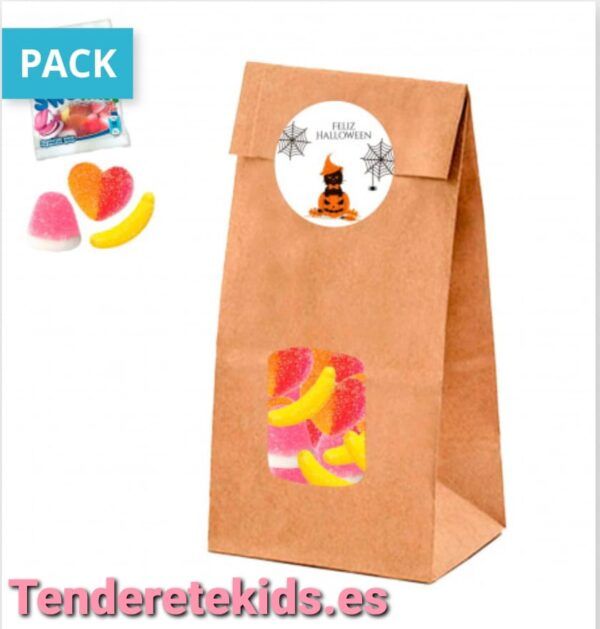 Mix de golosinas en bolsa de papel con adhesivo especial halloween para detalles