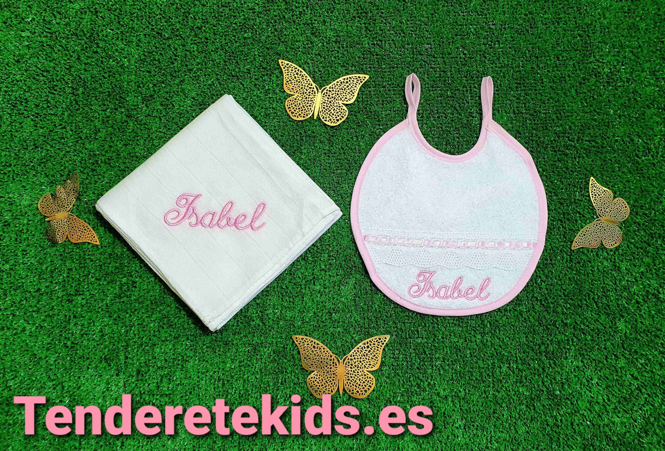Pack de babero blanco y rosa con gasa blanca personalizable con nombre