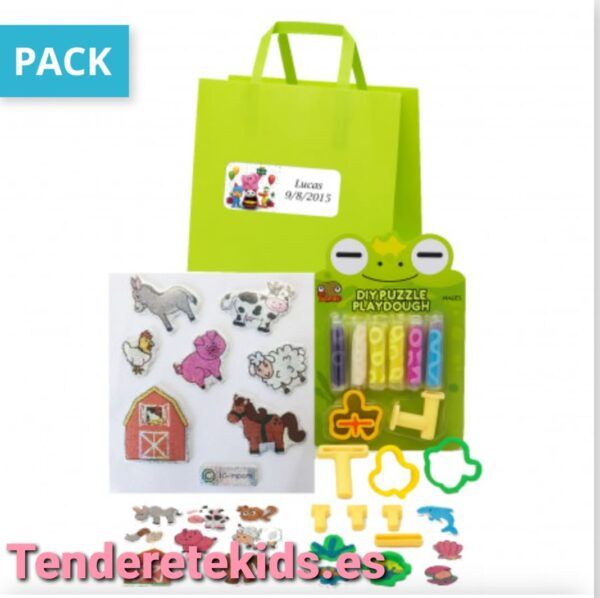 Plastilina de colores con herramientas y pegatinas en bolsa con adhesivo de cumpleaños de pocoyó