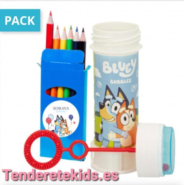 Pompero y caja de lápices personalizado de bluey para cumpleaños y eventos