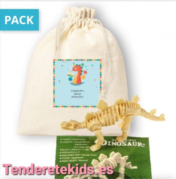 Puzzle dinosaurio en bolsa con adhesivo personalizado