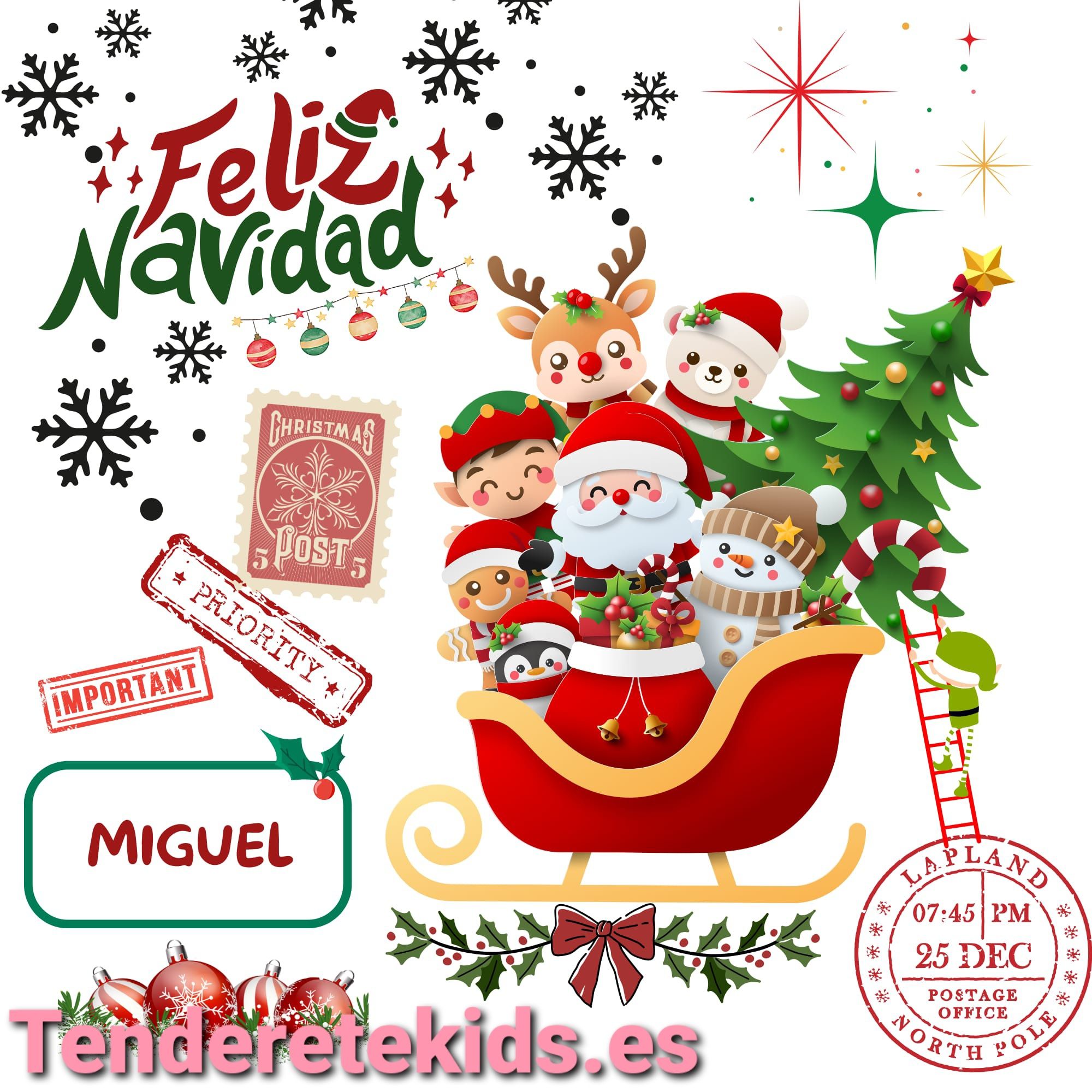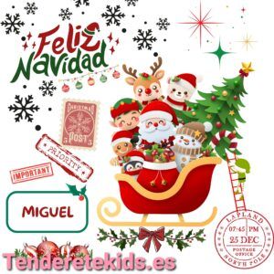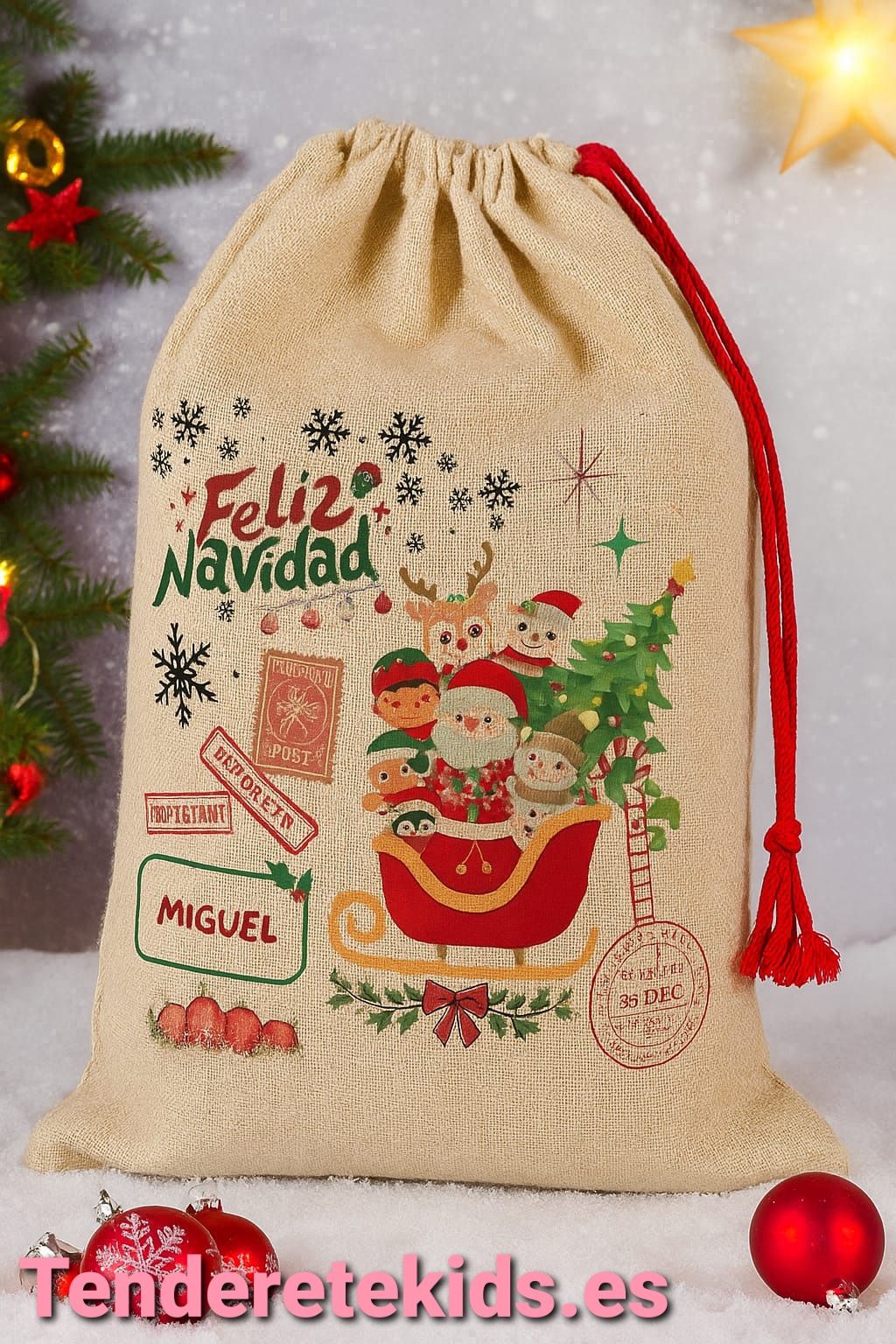Saco navideño personalizable con nombre (Modelo Papá Noel trineo)