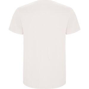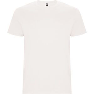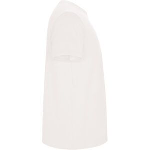 Camiseta de manga corta tubular en tallas de adulto y costuras laterales en tallas de niño. Cuello redondo en canalé 1×1. Cubrecosturas en cuello del mismo tejido.