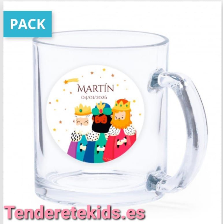 Taza de cristal navideña con adhesivo reyes magos personalizable para detalles