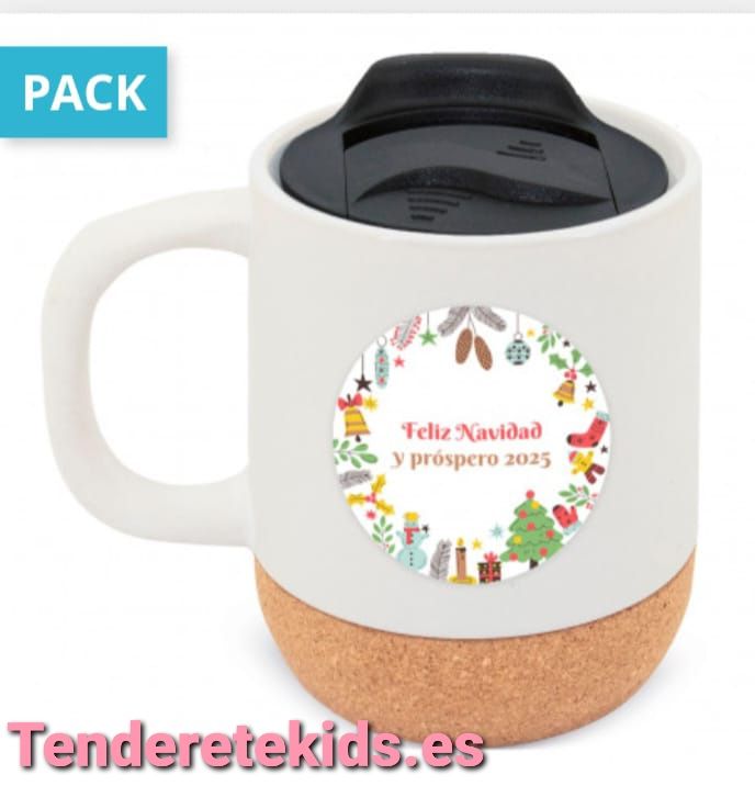 Taza termo de cerámica con adhesivo navideño personalizado para detalles