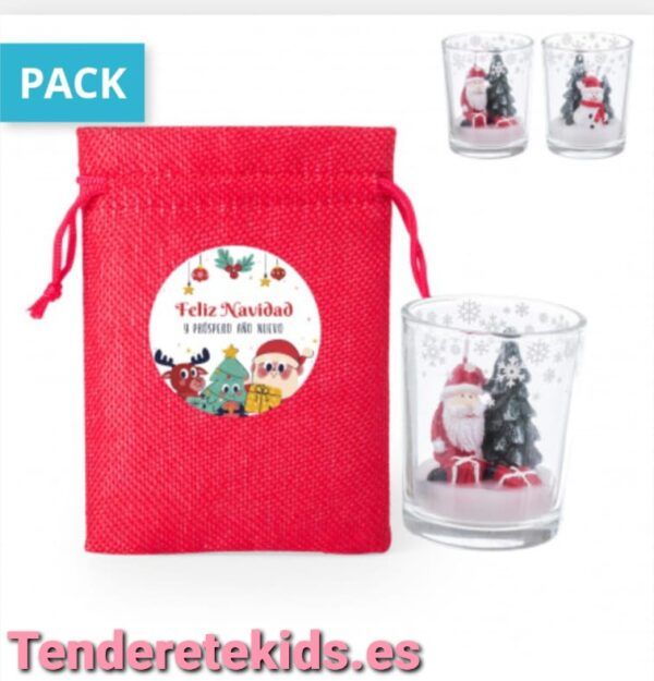 Vela de navidad en vasito presentado en bolsa personalizada con papá noel